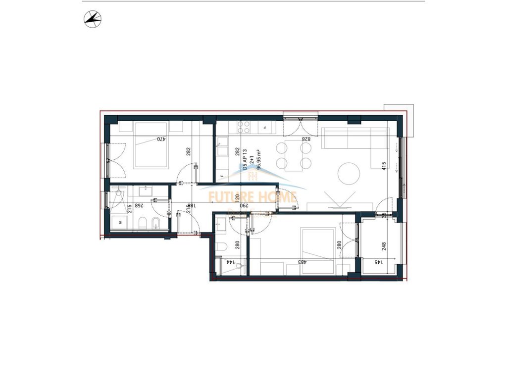 • Sipërfaqja e apartamentit neto: 96.95 m2.