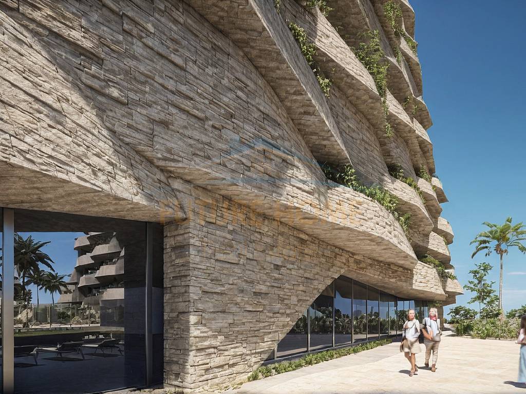 The project stands out for its elegant stone facade elements combined with advanced acoustic and thermal insulation, as well as integrated greenery on balconies and apartments with private yards. The outdoor spaces are designed with perennial vegetation throughout the year, automatic irrigation systems, and dedicated maintenance, creating a relaxing and natural environment.