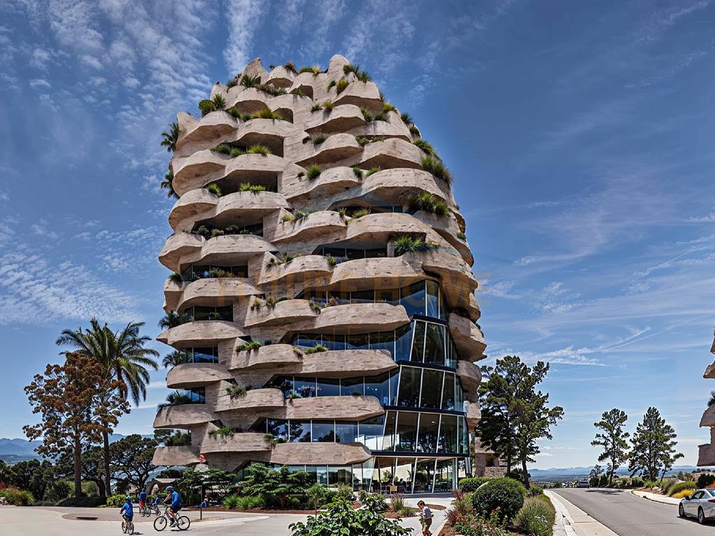 Projekti dallohet për fasadën elegante me element guri, të kombinuar me izolim të avancuar akustik dhe termik, si dhe gjelbërim të integruar në ballkone dhe apartamente me oborr privat. Hapësirat e jashtme janë të konceptuara me bimësi të përhershme gjatë gjithë vitit, sisteme automatike vaditjeje dhe mirëmbajtje të dedikuar, duke krijuar një ambient relaksues dhe natyral.